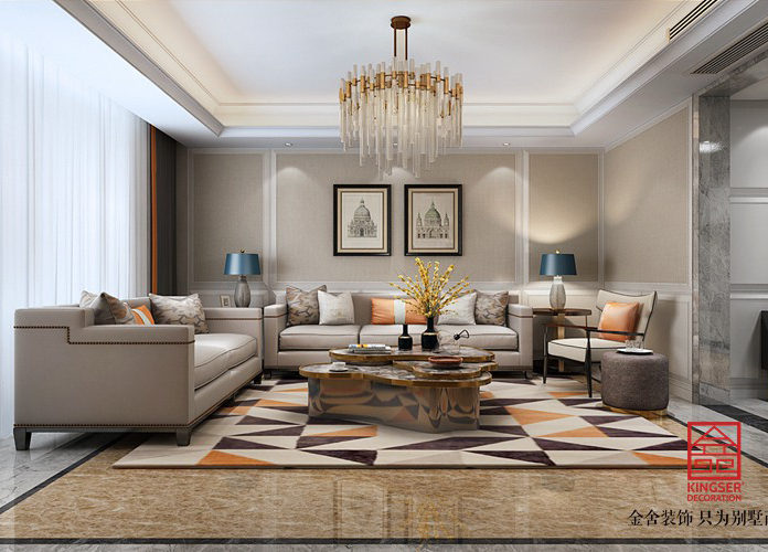 榮盛華府178平米美式輕奢風格裝修效果圖