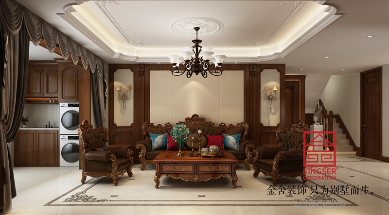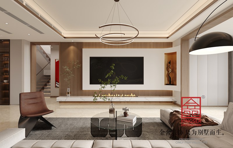 衡水漢王府別墅裝修現代法奢風格客廳效果圖