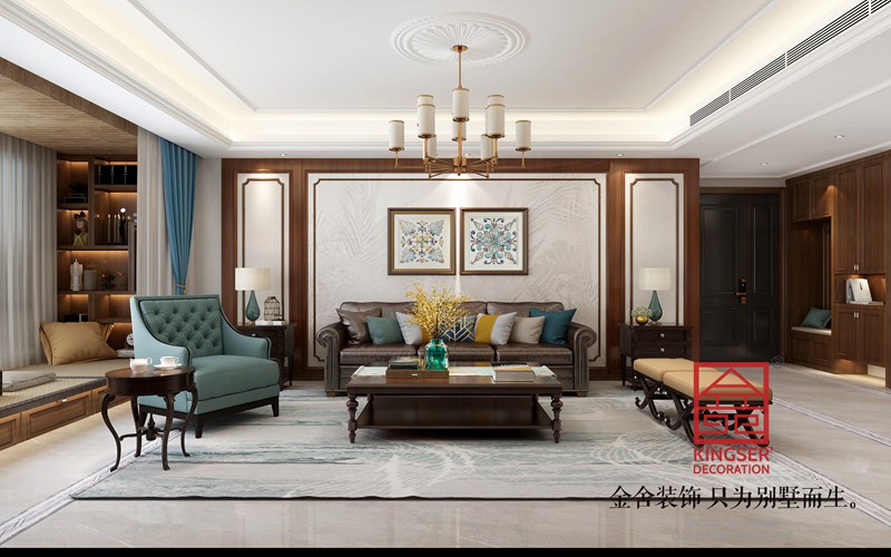 漢王府頂躍裝修140平米傳統美式客廳效果圖