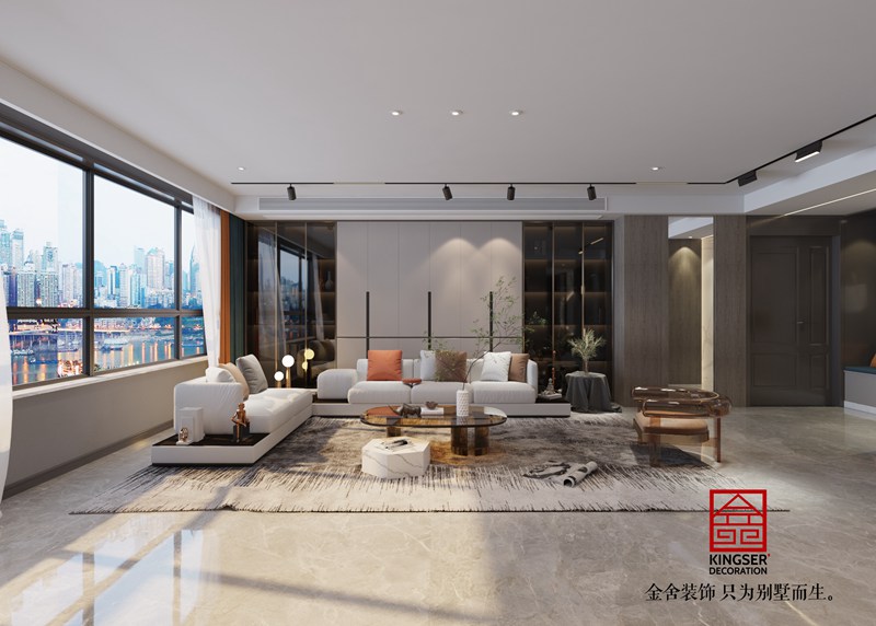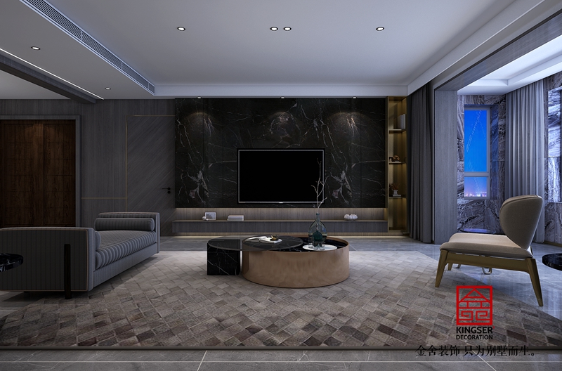 金碧天下現(xiàn)代輕奢風(fēng)格別墅裝修客廳效果圖