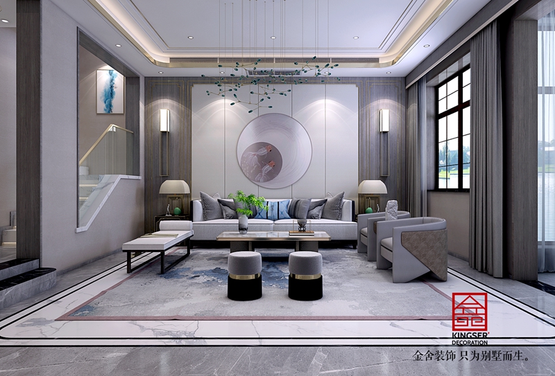 鑫界王府別墅裝修設(shè)計客廳效果圖