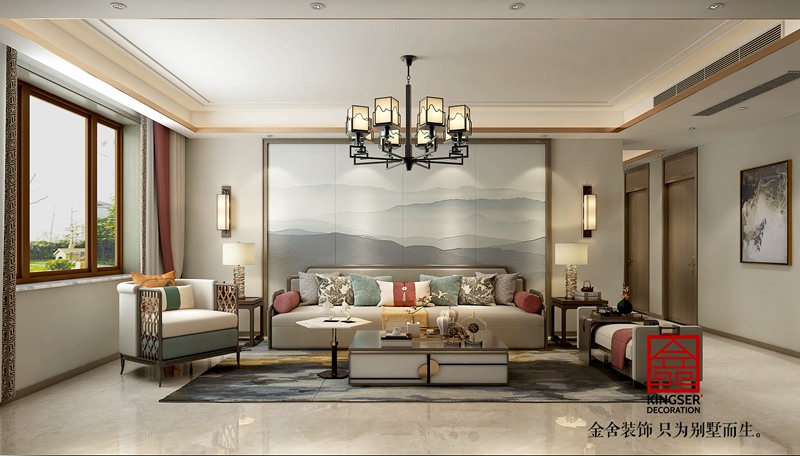 明靖莊園新中式風(fēng)格客廳裝修設(shè)計