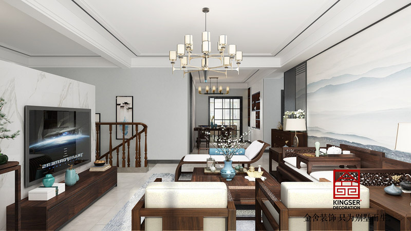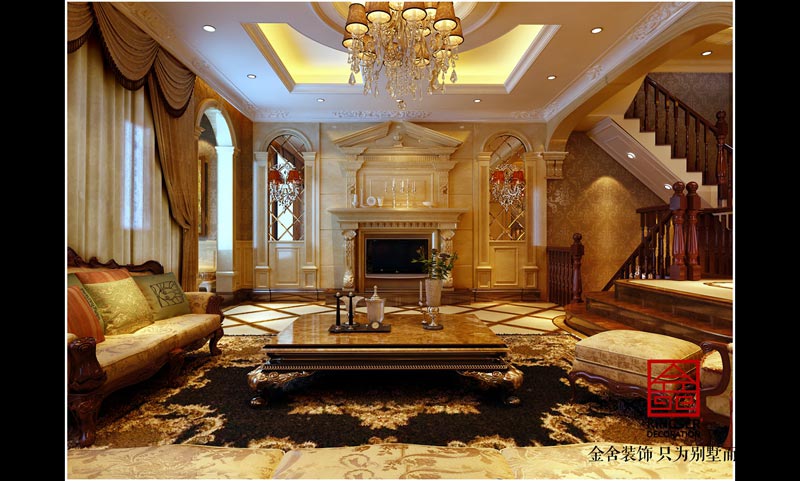 榮盛御府別墅裝修客廳效果圖
