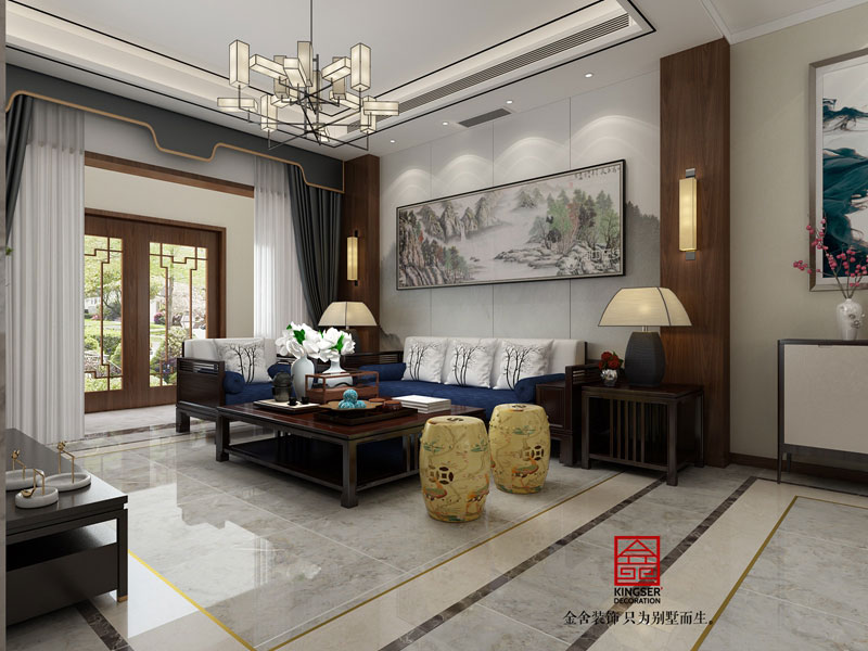 國賓壹號新中式風(fēng)格裝修效果圖-客廳