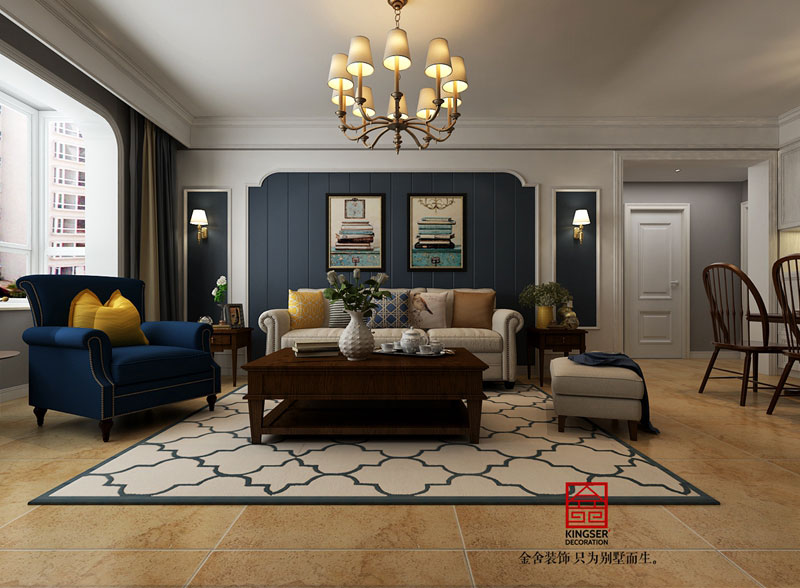 瀚唐二期美式風(fēng)格裝修效果圖-客廳