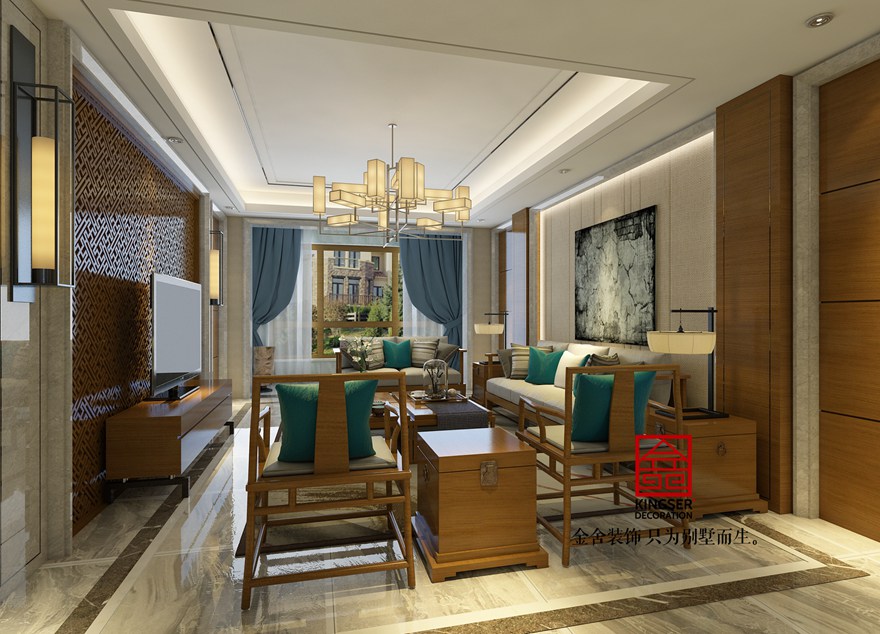 御河上院200平米裝修-新中式風(fēng)格-客廳