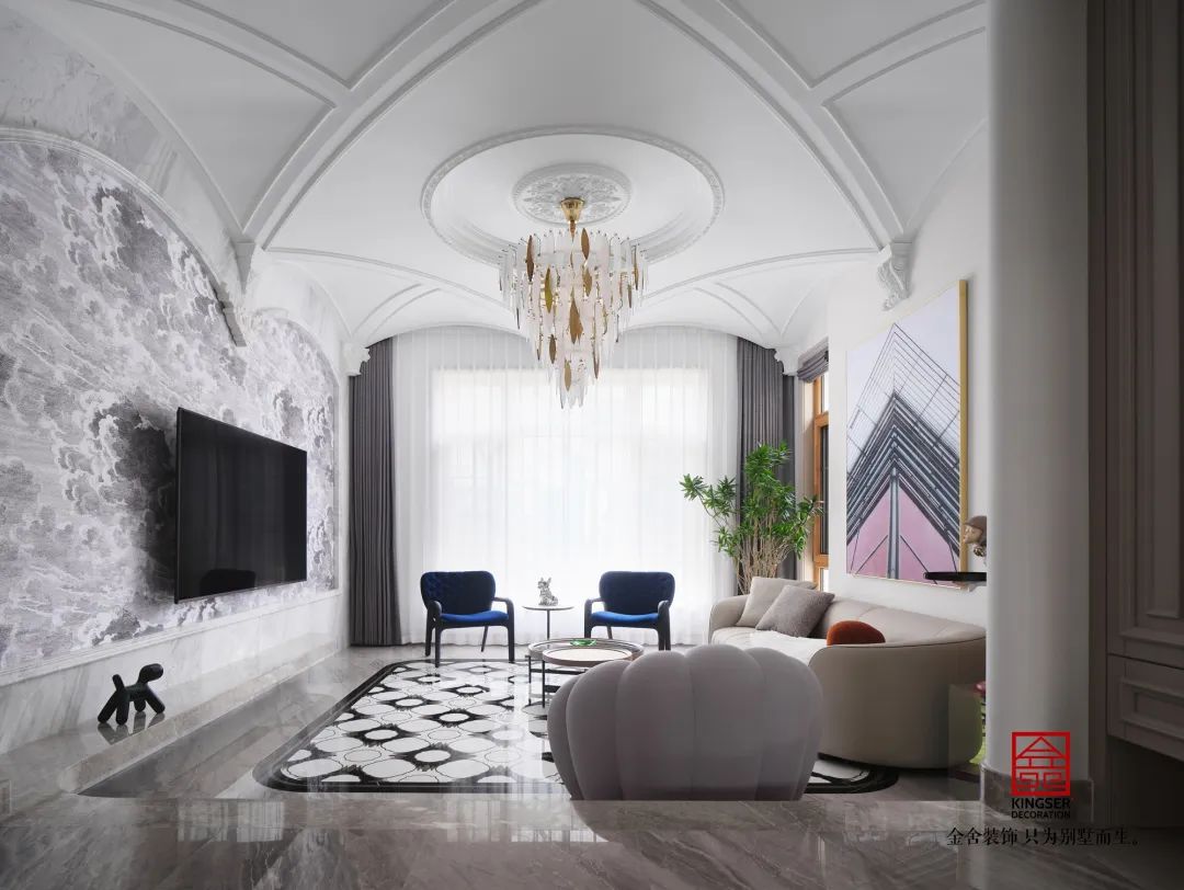 中冶德賢華府現代輕奢裝修客廳實景圖