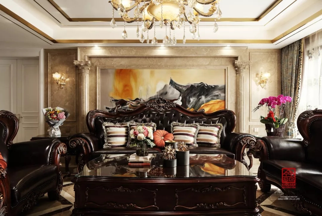 原河名墅別墅裝修-美式風(fēng)格-客廳