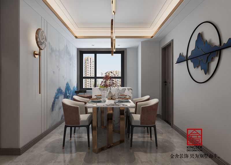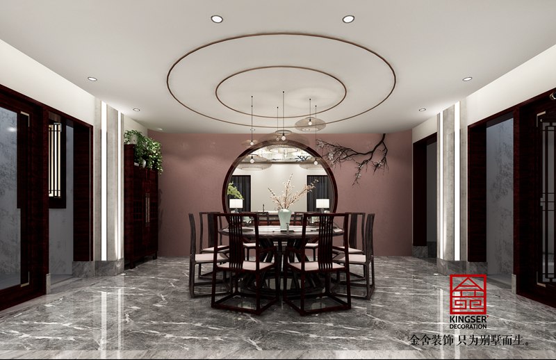 國山雅苑300平新中式別墅裝修餐廳效果圖