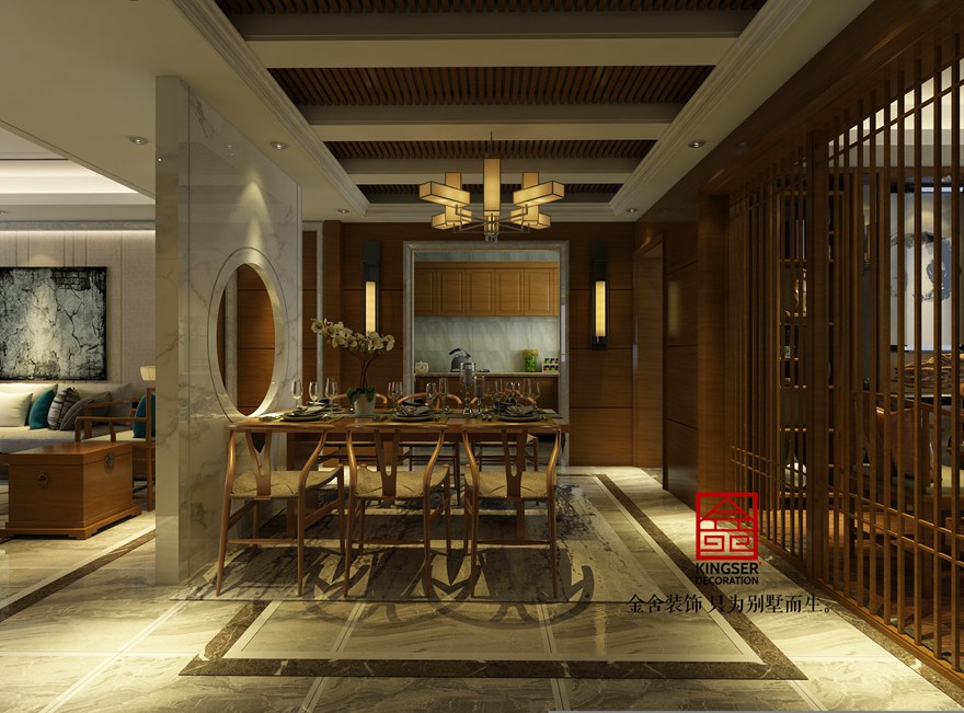 御河上院200平米裝修-新中式風(fēng)格-餐廳