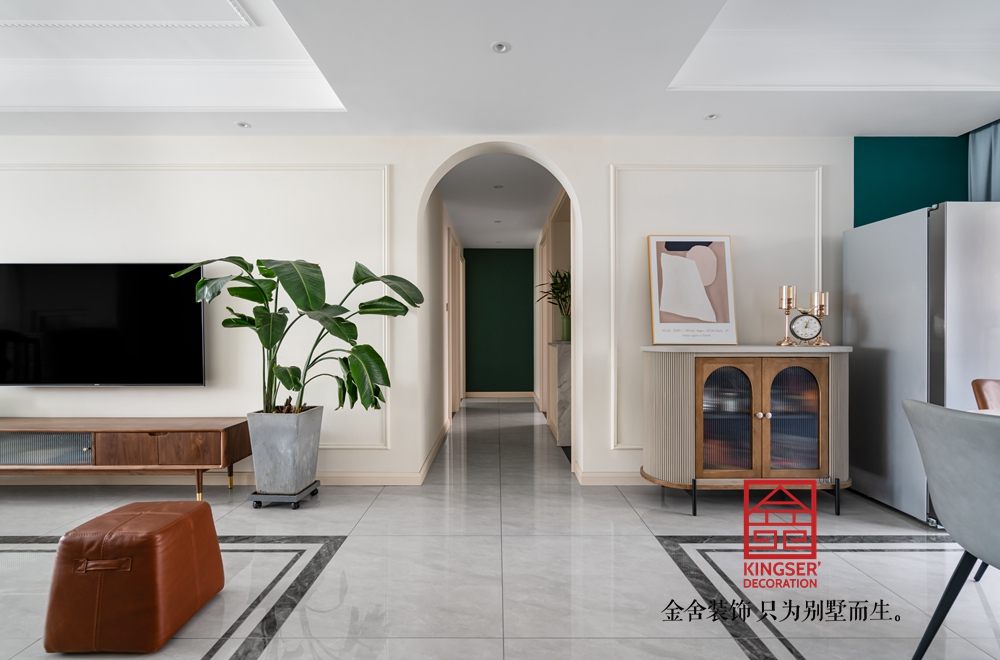 我們希望在設計每一個空間時,不僅要讓空間本身充滿想像,同時營造出的氛圍能感染周圍的每一個人。本案作品將復古與摩登兩種元素結合,不僅表現在硬裝,更多是通過軟裝的造型及色彩來表達對精致生活的態度。
