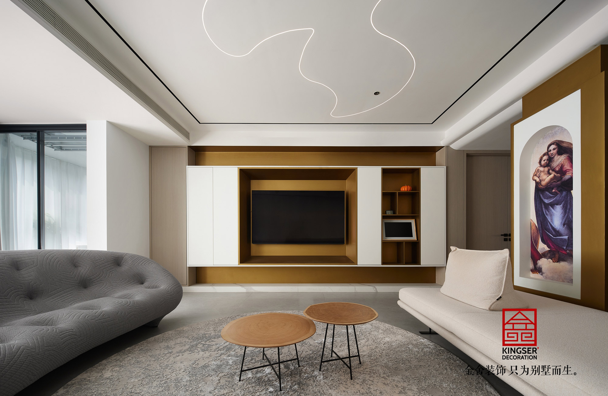 簡(jiǎn)潔舒適的個(gè)性化空間 圓弧造型的時(shí)尚點(diǎn)綴 感受空間的溫暖時(shí)光 金舍裝飾只為別墅而生