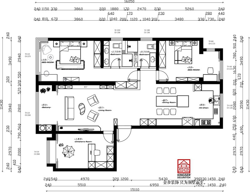 融創中心180㎡復古風格裝修戶型解析