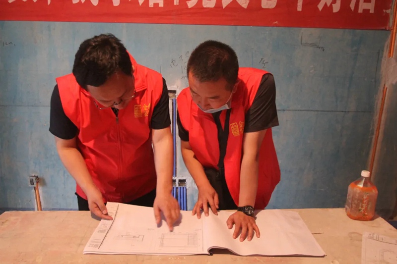 每一個新的工地開工,每一個節(jié)點的驗收,每一套施工圖紙的完整和統(tǒng)一,每一個材料和工具的擺放,工地需要他們來管理,工地也需要他們來規(guī)范,正是這些背后英雄的巡檢和管理才有了今天金舍工地施工的專業(yè)、美觀、無瑕疵。