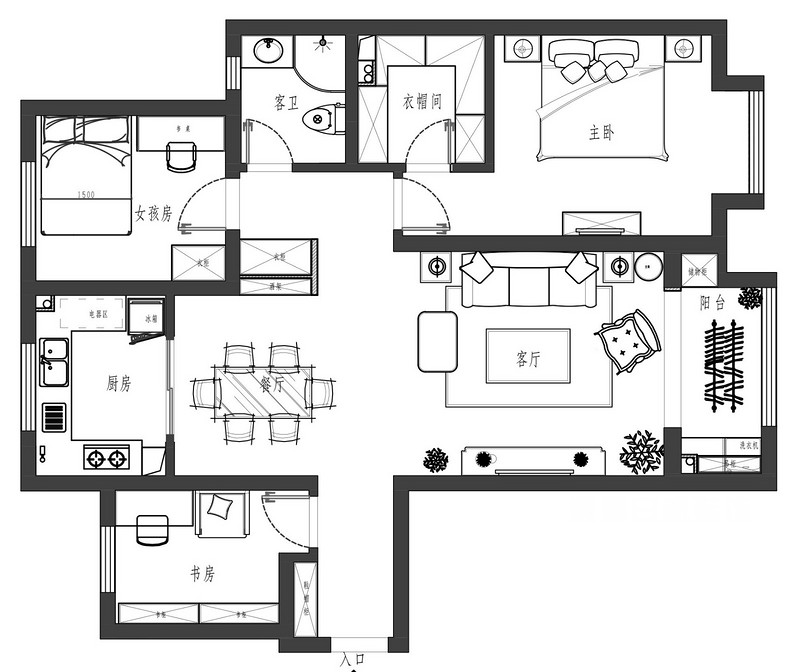 此戶型方正,南北通透,通風(fēng)采光比較好,空間分隔合理,廚房門口擴(kuò)大,使利用空間更大,更好的增加通風(fēng)和采光,主臥的飄窗拆除,使主臥空間變大,顯得不是很擁擠,給人一個舒適的居住空間,采用用本公司香草天空的衣柜,使整個空間更加美觀,從而也增加了室內(nèi)的儲物空間,也使室內(nèi)更加干凈整潔。