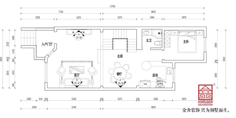 負一層:把原有的一個空間分為兩個獨立的空間,增加了公共衣帽間,提供一個功能區,同時也保證了臥室的獨立性和私密性。