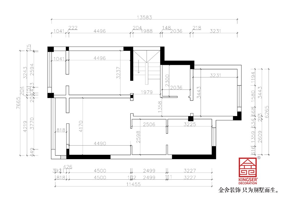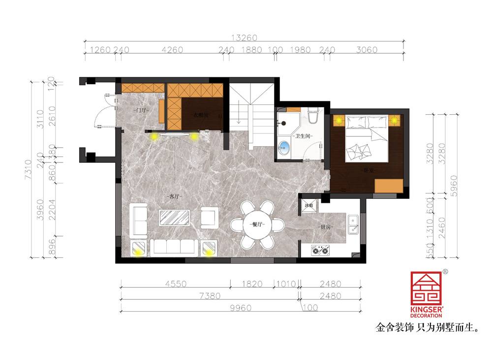 劃分原始門廳為兩個(gè)獨(dú)立空間,一個(gè)為獨(dú)立門廳,另一個(gè)為儲(chǔ)物衣帽間。