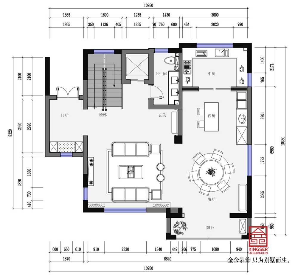 ① 將窄長空間合理利用劃分為中西廚。廚房餐廳南北相連,就餐、使用便利。就餐同時(shí)可以觀景。
