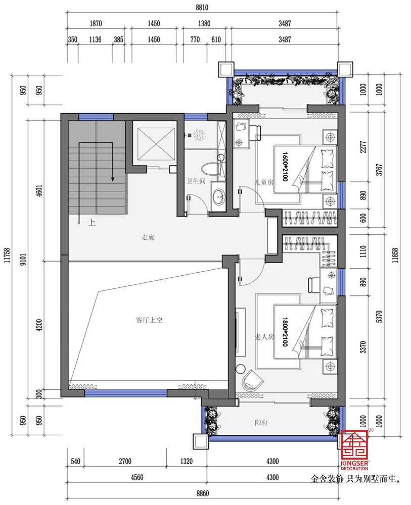 ② 相較與二樓有了一個(gè)公共空間,同時(shí)連接陽臺(tái)。