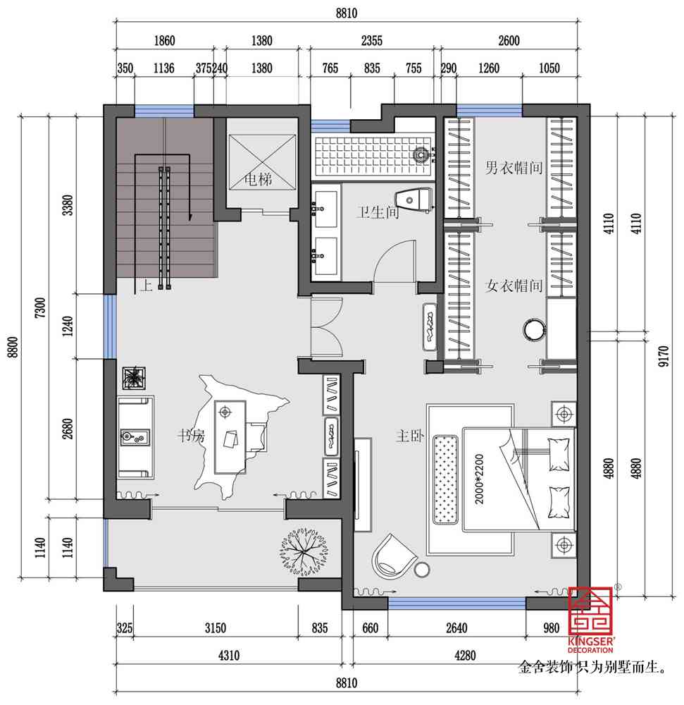 ①  豪華套件,區(qū)域劃分明確,動(dòng)靜分離,衣帽間與衛(wèi)生間分離。