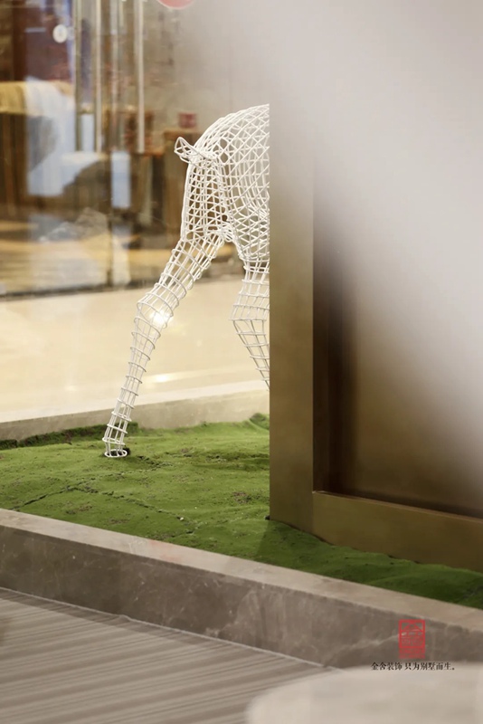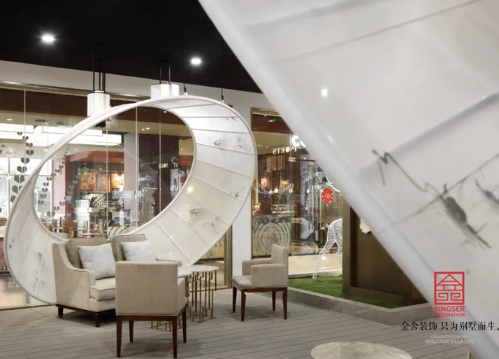 -御河上院在商場的樓盤展示區(qū)裝修實景,在設計中將自然與人文的意象融入室內(nèi)設計,綠意盎然的自然景象以其深厚的文化底蘊滋潤著人們的心靈,對自然的認識和感悟,讓人豁然開朗,心曠神怡,也就成為中國傳統(tǒng)文化資產(chǎn)的傳承、轉(zhuǎn)譯與新生 。