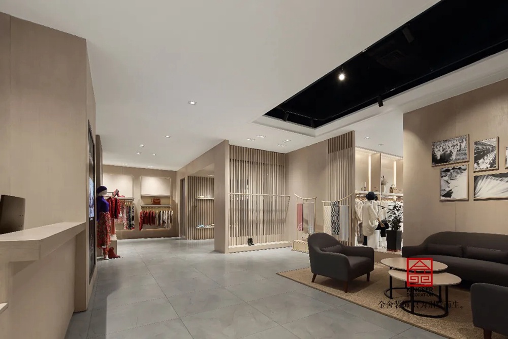 休息區(qū)的風(fēng)格與整體風(fēng)格一致,復(fù)古的木柵格讓店內(nèi)的展示衣物若隱若現(xiàn),讓處于休息區(qū)的客戶也能觀賞到店內(nèi)主推的產(chǎn)品。