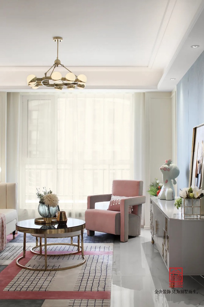 此案例為石家莊金舍裝飾-天海容天下110平米輕奢風格裝修實景。精致是一種生活中的和諧,而輕奢則是和諧生活的催化劑,讓我們真正處在充滿美好、自在、隨性的生活氛圍之中。此設計主要強調的是功能性設計,盡可能的做到形式更多地服務于功能。整體線條簡約流暢,色彩對比強烈,能給人帶來溫馨、愜意的感覺。