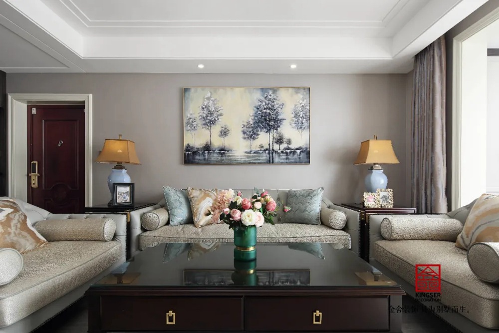 此案例為石家莊金舍裝飾-保利拉菲公館170平米美式風格裝修實景。簡美風格就是既有西方元素,又具有強烈的現代時代感元素。每個設計里都需要軟裝上的搭配去展現出不同的視覺效果。從空間的色彩來講,簡美式風格的設計是以淺色為主、深色為輔的設計理念為原則。為了避免大范圍采用鮮艷靚麗的顏色,用清凈時尚的裝修設計維持住整個空間里的大氣優雅的感覺。