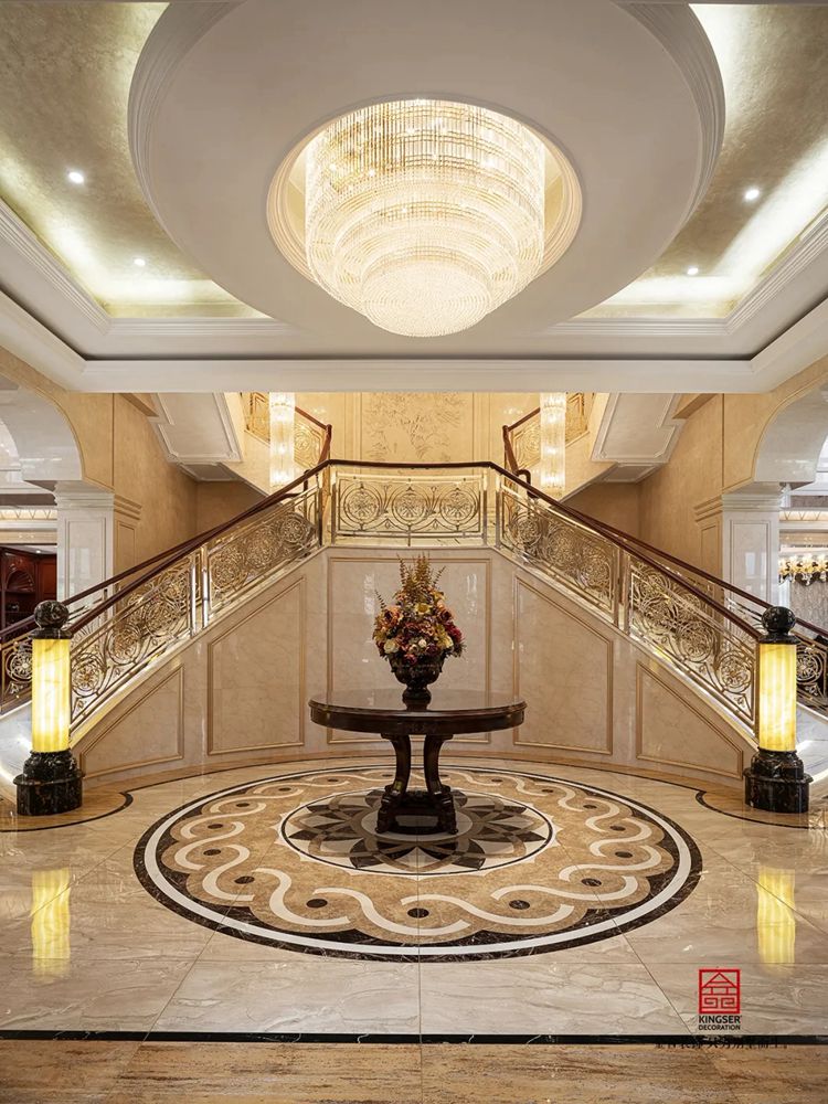 此案例為石家莊金舍裝飾-無極御瓏華府2400平米別墅歐式風格裝修實景。御瓏華府“中西合璧”這是一套集“土建+硬裝+軟裝+庭院”一體的全案設計,占地東西70米,南北50米,整個結構坐落于小區的核心位置,打開家門,先是私有的庭院生活,再而迎面就是小區的綠化水系,視野開闊,一覽全景。方案設計為“中西合璧”風。浪漫的歐式古典風融入東方設計元素,嶄新的文化底蘊得以傳承,既有歐式的富貴典雅又有中式的文化底蘊,二者巧妙應用,提升整個空間氣質。