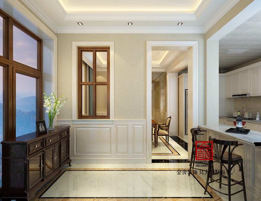 本案為石家莊金舍裝飾-大者300平米美式風(fēng)格裝修效果圖。采用了簡(jiǎn)單明了的淺色調(diào)的清新美式風(fēng)格,整體的色調(diào)采用了淺米黃色的素色壁紙,加之乳白色簡(jiǎn)潔造型,精致的銅鑄吊燈,使得整個(gè)空間錦上添花,質(zhì)樸而不奢華。搭配亮色布藝和簡(jiǎn)潔干練的美式家具,使得整個(gè)空間簡(jiǎn)潔大方,質(zhì)樸典雅,完美的符合了業(yè)主提出的“簡(jiǎn)潔而不簡(jiǎn)單”的設(shè)計(jì)理念。