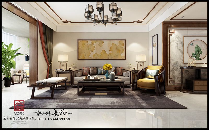 家的渴望,也是生命在追尋一種歸宿。新中式風格是在傳統中式的繁復嚴謹上結合當前時代背景下的演繹設計,它在家具上不再以傳統明清家具為主調,加入了線條簡潔的現代家具。布局上則延續嚴謹對稱、陰陽調和的格局,材料上多用天然材料。同時加入五行元素的組合規律來營造禪宗式的理性和寧靜環節。