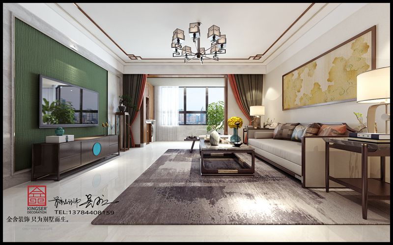本方案為石家莊金舍裝飾-榮盛華府178平米新中式風格裝修效果圖。風格為新中式,倦鳥歸林,魚翔淺底,落葉歸根,這都是對
