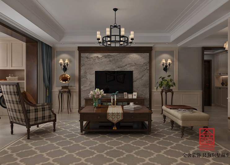 此案例為石家莊金舍裝飾-國賓壹號158平米美式風格裝修效果圖。“家”,不僅僅是一所房子,更是有溫度的空間。居住于此的人,無論是奔波打拼的年輕人,還是慢下步調的中老年,回到家的那一刻,是最為放松的。這里,是寧靜的港灣,是柔軟內心的居所。