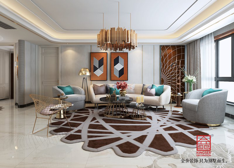 空間構(gòu)造以“方與圓”相互穿插運(yùn)用,凸顯現(xiàn)代獨(dú)特的工藝造型,講究細(xì)節(jié)的打造,在直線與曲線的交合之中,用金屬的質(zhì)感、烤漆的厚度,絲質(zhì)的光澤打造出主人特別的風(fēng)格品味。這是自由的、開放的、也是令人向往的。沙發(fā)經(jīng)典款型的運(yùn)用,與再設(shè)計(jì)再創(chuàng)作,賦予整體空間新的生命,也是對高品質(zhì)生活的自我詮釋和向往。