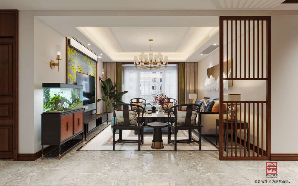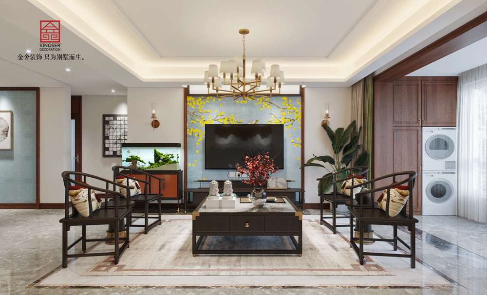 此案為金舍裝飾-維多利亞186平米新中式風格裝修效果圖。定位為新中式裝修風格,布局上遵循了中式風格中對稱的布局方式,講究空間的層次感和沉穩感。整體色彩以米黃色為主,去營造一種溫馨舒適但不沉悶的氛圍感。