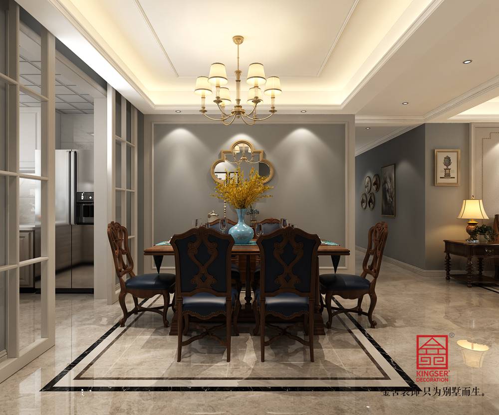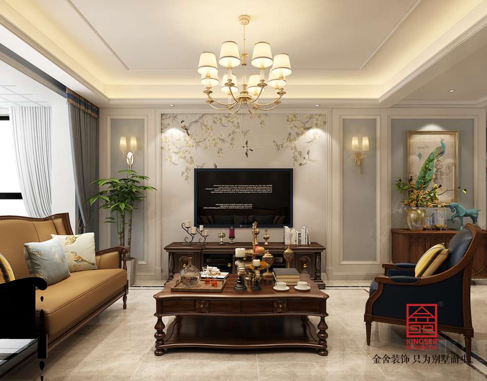 此案例為石家莊金舍裝飾-東南智匯城142平米美式風格裝修效果圖。