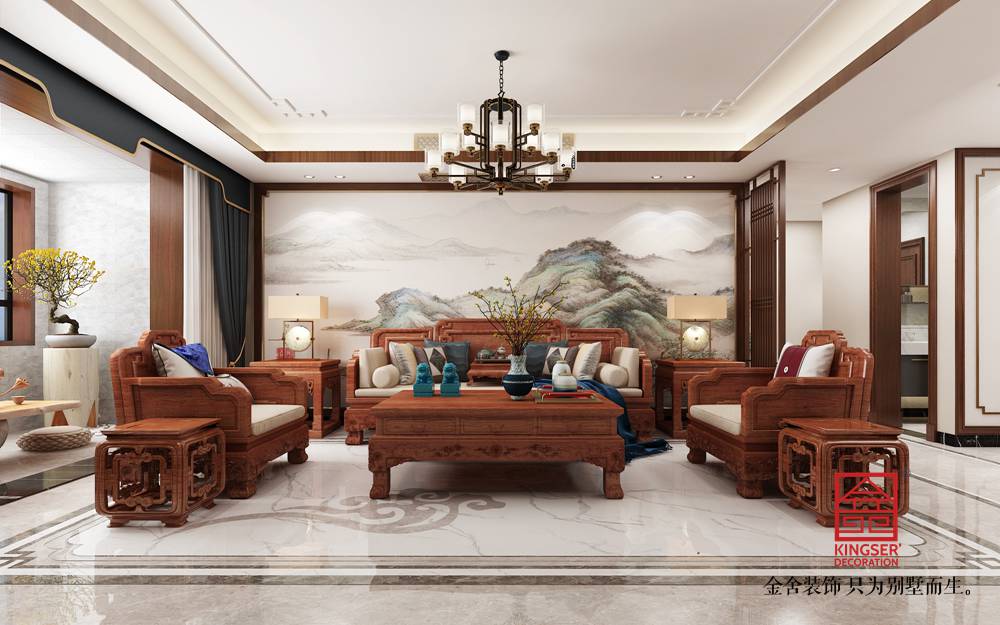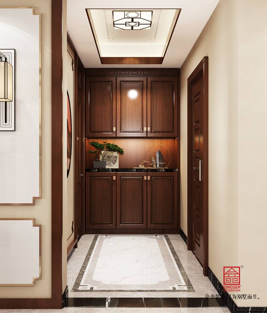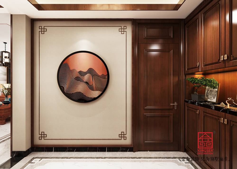 設(shè)計(jì)說(shuō)明:本案為石家莊金舍裝飾-維多利亞三期166平米中式風(fēng)格裝修效果圖。風(fēng)格定義為中式風(fēng)格,中式風(fēng)格非常講究空間的層次感,在需要隔絕視線的地方,則使用中式的屏風(fēng)、中式木門、工藝隔斷、簡(jiǎn)約化的中式“博古架”,通過(guò)這種新的分隔方式,展現(xiàn)出中式家居的層次之美,客餐廳空間添加了中式山水畫(huà)祥云圖案元素,使整體空間感覺(jué)更加豐富,大而不空、厚而不重,有格調(diào)又不顯壓抑。