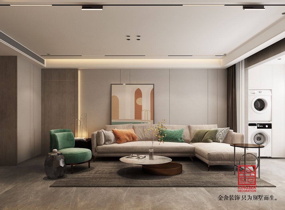 主案設計師:康立翅 設計說明:本案是金舍裝飾-榮盛和府183平米現代簡約風格裝修效果圖。現代簡約風格,打破傳統設計理念。本案的業主是一對待婚的年輕人,在年輕人心中,現代簡約風格是時尚、前衛的家居裝修風格。