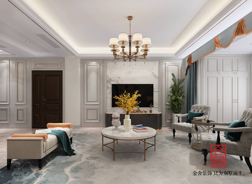 榮盛和府194平米美式風(fēng)格裝修效果圖