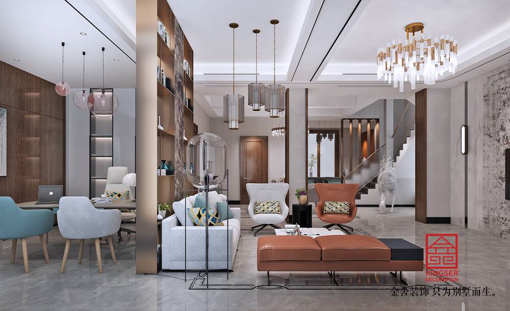 -大者290平米現代簡約風格裝修效果圖。它雖然摒棄了過度華麗的裝飾,也沒有多余的裝飾造型,但與北歐風的“性冷淡 "依然有著明顯的區別—— 在張力十足的線條勾勒、層次豐富的材質運用以及質感奢華的裝飾細節下,為居住者帶來一種奢雅的生活體驗。