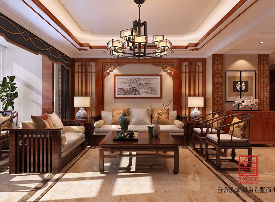本案為石家莊金舍裝飾-天山國賓壹號139平米中式風格裝修效果圖。以兼收并蓄的手法,在嚴謹的本源與舒張的創意間運籌。在蔚為大觀的中國傳統藝術中,提煉古建外觀上的恢弘、內部細節的精致,注入宋代美學的清簡意蘊,搭配木制的古雅,形構出大氣朗闊且不乏俊逸之美的東方人居空間。在東方風韻意境的營造中,文雅的生活方式于此間蔚然成型。