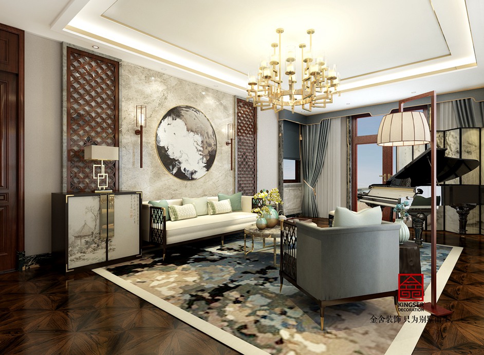此案例為石家莊金舍裝飾-北苑別墅800平米新中式風格裝修設計圖。新中式風格中的家具大多是古典家具或者是現代家具與古典家具想結合。家具的顏色主要是以深色為主,有深厚沉穩的底蘊。裝飾造型主要采用硬朗簡潔的直線條,空間具有層次感。既使得中式家具古典、質樸的內涵顯現,又符合現代人追求的時尚感、實用性。 金舍裝飾在室內設計中,一貫追求照搬古代設計往往效果不盡如人意,更要注重加入現代元素。現代技術中有很多新型材料,就可以善加利用進去。另外在設計中也可以把主人的個人喜好、品味等也加入進去。既滿足現代人居住的要求,迎合中式家具的設計風格。