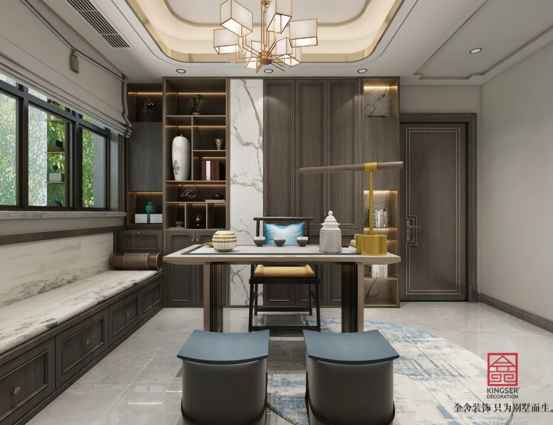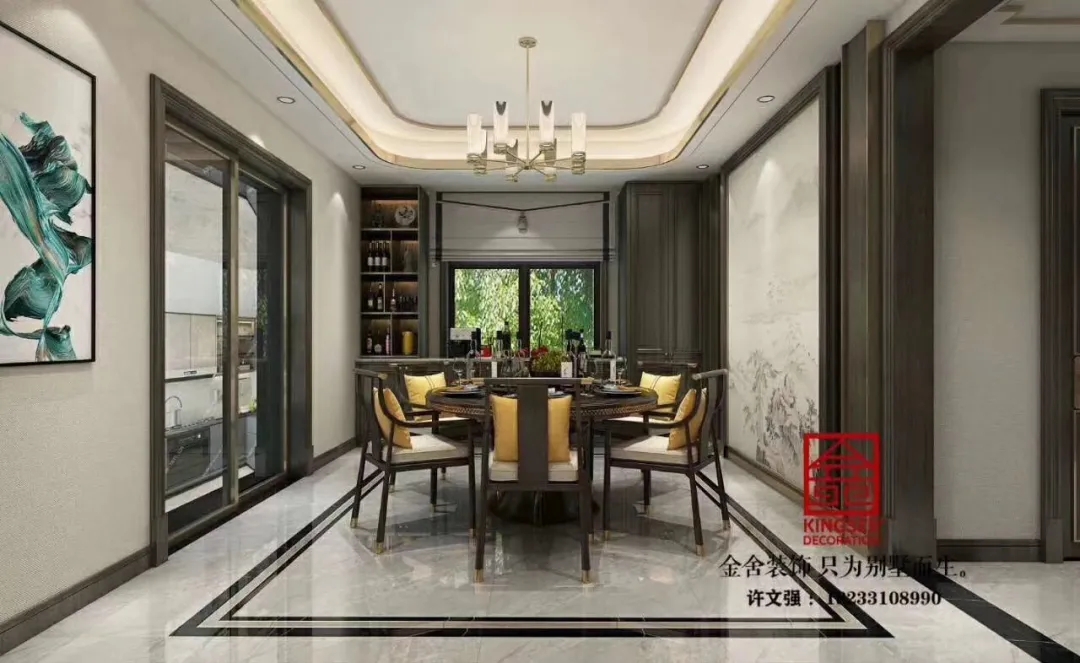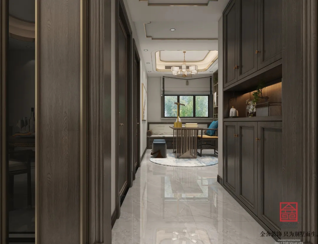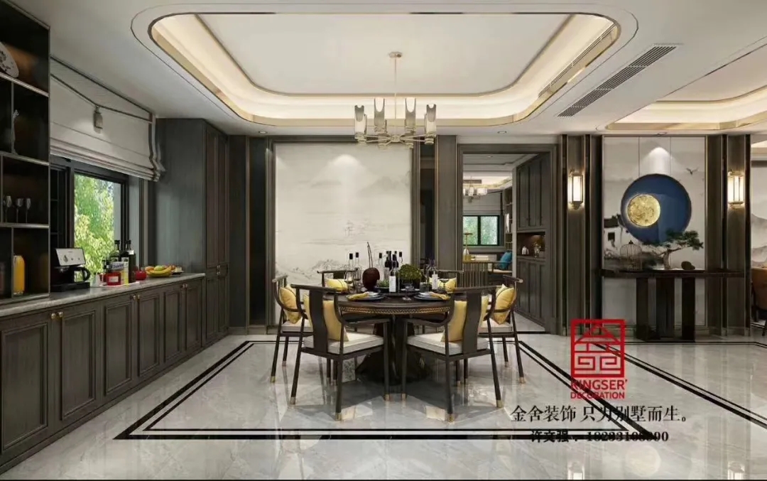 此案例為石家莊金舍裝飾-榮盛華府215平米新中式風格裝修案例。新中式風格傳承了傳統中式風格的文化底蘊,又將現代審美融入其中,將含蓄內斂的美學韻味徐徐呈現在了眾人面前,令人沉醉、留戀。似有靜謐、似含古韻,思想不禁浮想聯翩,無法掩飾一個人的精神世界,是心靈和性情的外化之地。中式元素與現代材質搭配,既有文化的傳承又不會全盤固守傳統,是現代的思想與千年來的文化彼此融合與碰撞。