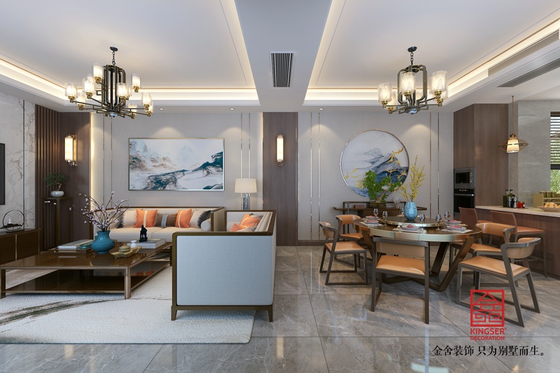 此案例為石家莊金舍裝飾-龍湖天宸原著210平米新中式風格裝修效果圖。每個人的成長環境受到的思想并不相同,或古樸、或現代、或激進、或保守,但是永遠繞不開的就是中式風格對我們的影響,選擇中式風格的人秉承著中式文化對自我的洗禮。其中中式風格的家居傳承著傳統風格的精髓,通過與現代潮流的對話產生創新,它是中國傳統美學在現代生活的重新演繹。對新中式風格有著深厚情懷的人而言,為自己打造一個清新淡雅的新中式家居,不僅可以撫慰煩躁的內心世界,更是一種生活品質享受。