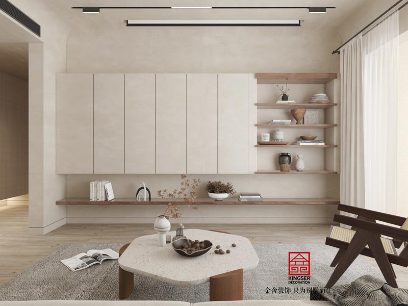 設計說明:此案為石家莊金舍裝飾-盛邦大都會150平米裝修效果圖,侘寂是日本美學意識的一個組成部分,一般指的是樸素又安靜的事物。它源自小乘佛法中的三法印(諸行無常、諸法無我、涅盤寂靜),尤其是無常。它顯露出的一種充滿歲月感的美;即使是外表斑駁,或是褪色暗淡,都無法阻擋(甚至會加強)的一種震撼的美。詫寂風格是近兩年小眾風格中比較被人熟識且熱捧的風格之一,客戶為一線攝影師,對其風格與生活理念與詫寂風不謀而合,我們選用詫寂作為主調,將生活方式及審美、精神、理念融合到空間設計中,打造不一樣的情懷。