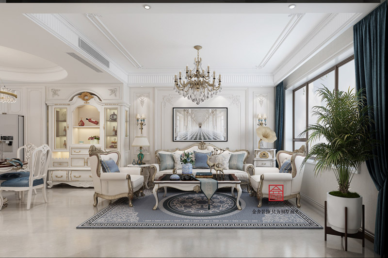 石家莊裝修設計-九里晴川143㎡歐式風格上躍裝修案例 ,家中在裝修的時候在很多地方都選擇了連通空間的設計方案,最大限度地確保了空間的開闊性,拓寬了家里視覺空間,打造了一個輕奢主義的舒服美居。