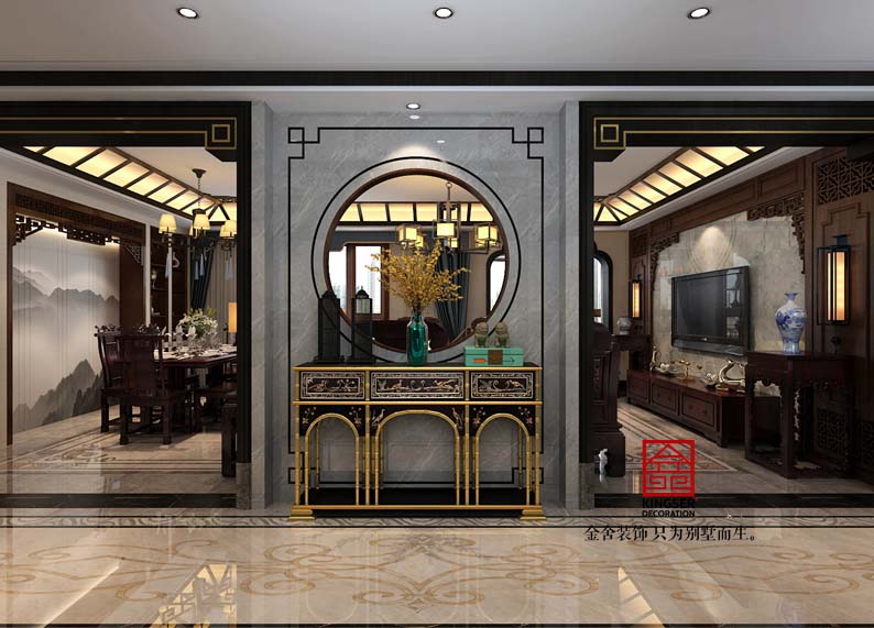 設計說明:此案例為石家莊金舍裝飾-國賓壹號192平米新中式風格裝修效果圖。走進空間,似乎能體驗到一切都慢下來的快樂、慢得一份神凝、樂得一份禪定之智。并沉浸在這氛圍中,使生活得到舒適,使內心得到安置。芳草盈階,茶煙幾縷;春光滿眼,黃鳥一聲。此時可以詩,可以畫,而正恐詩不盡言,畫不盡意。