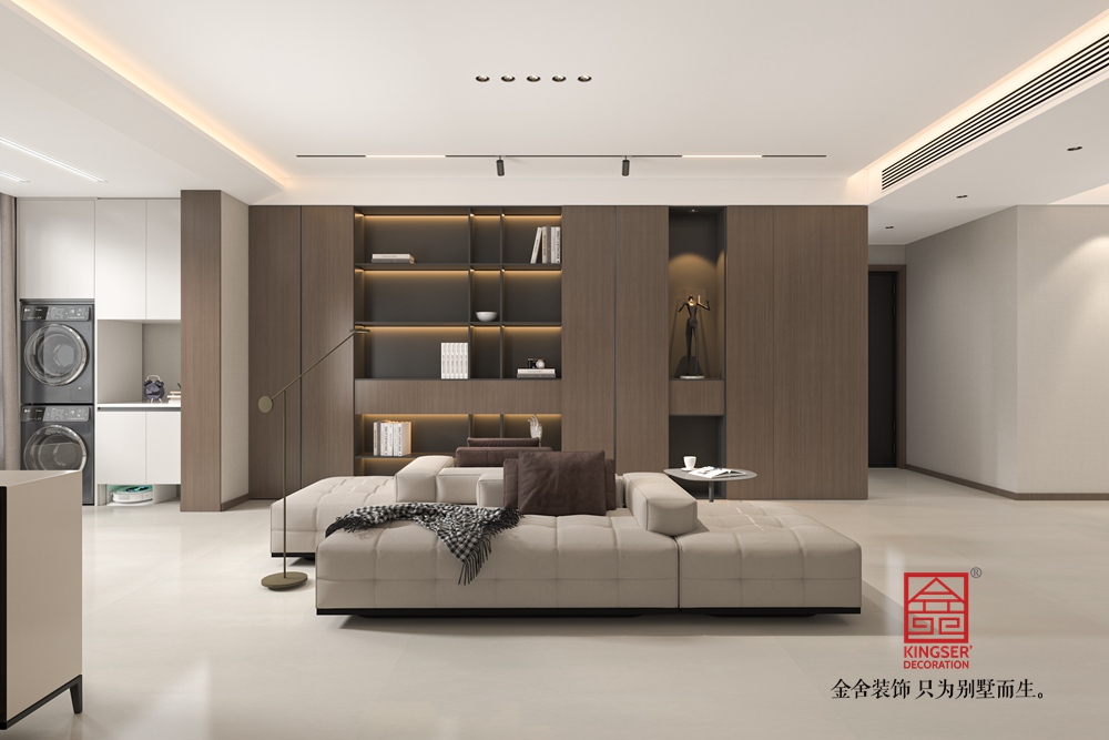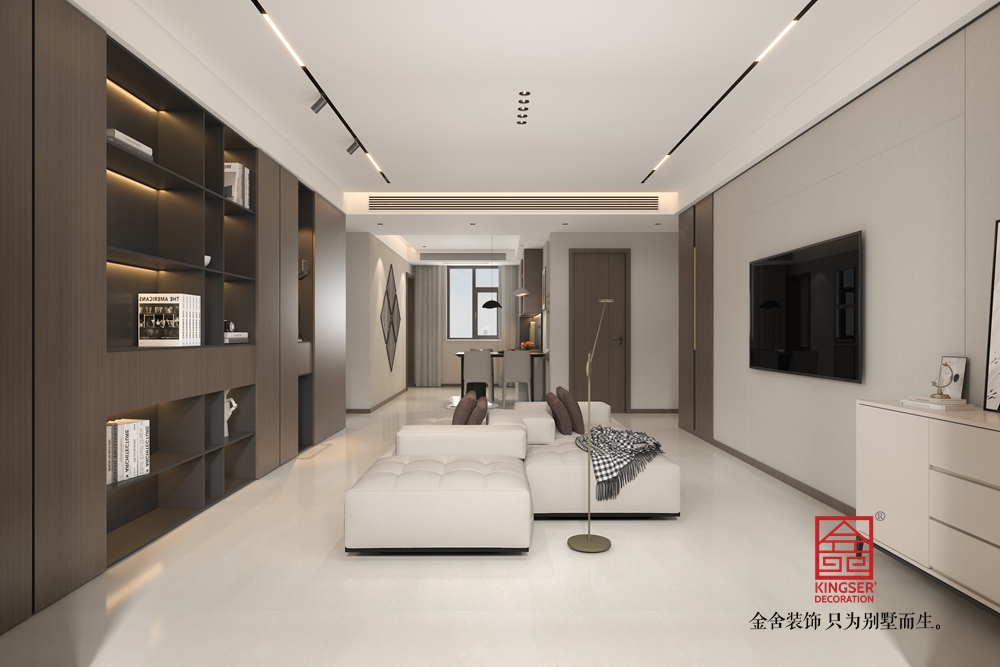 燈光設計上,結合了線性燈帶與點式射燈,既滿足了基礎照明需求,又通過光影變化增添了空間的層次感與藝術感。角落的綠植與裝飾畫,為空間注入自然生機與藝術氣息,整體布局開闊通透,每一處細節都彰顯出對品質生活與美學體驗的追求,打造出一個兼具實用性與美觀性的現代家居客廳。