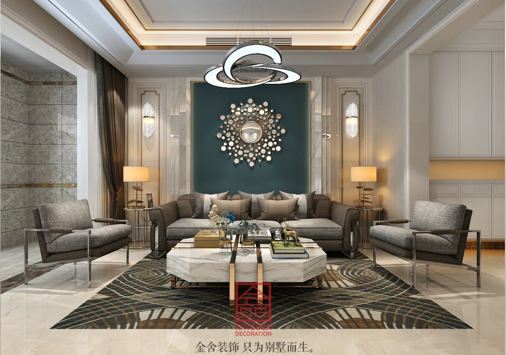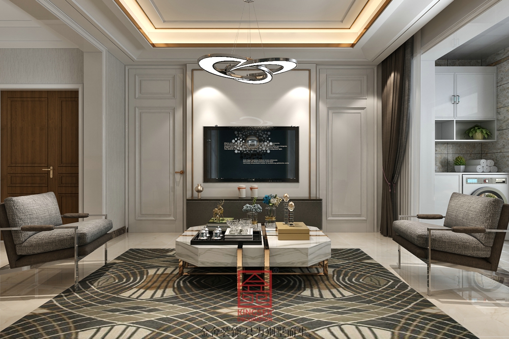 設計說明:此案例為石家莊金舍裝飾-融創中心155平米輕奢風格裝修效果圖。 現如今,在奢侈風暴洗禮下的都市人,一方面缺乏一擲千金的消費能力,另一方面又不肯放棄“高質量”的生活追求,所以“輕奢”作為一種流行概念應運而生,在都市的年輕人群中大受追捧。而在現代裝修設計中,“輕奢”主要表現為一種帶有理性和溫度的美學風格。