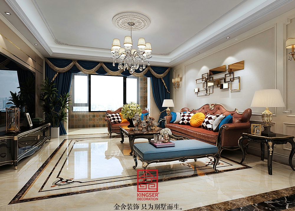 【設計主創(chuàng)】:何瑞根 設計說明: 此案例為石家莊金舍裝飾-東南智匯城190平米歐式風格裝修效果圖。雖是歐式風格,但是也顯低調和奢華,空間的設計,線條加金屬的精致,兩者相容,地面的大型拼花的石材 ,皮質紋路的串聯(lián),金屬與石膏銜接的墻體,水晶的閃爍,為整個家的色彩增添不少精致。